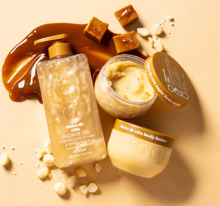 Available in a Shower Gel, Body Scrub, Body Butter, Perfume Bodycare Mist, Shimmer Body Oil & Shimmer Body Stick.