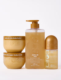 Rich, indulgent and glow-inducing. Dulce de Vita mixes caramel, macadamia and sandalwood for a scent that’s straight from a dessert bar in the Italian sun. The bundle includes Shimmer Shower Gel, Body Scrub, Body Butter and Perfume Bodycare Mist to deeply hydrate, soften and leave skin radiant.